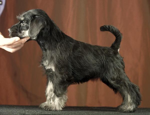 Шуба на нем жесткошерстна, цвета перца с солью, черная с серебром или черная; не спутывается и не сваливается, но требует регулярного профессионального ухода с периодичностью 3-4 месяца. Шерсть расчесывается и обрабатывается щеткой (последнее относится в особенности к окружающей мебели). Голова, грудь, плечи стригутся вручную.